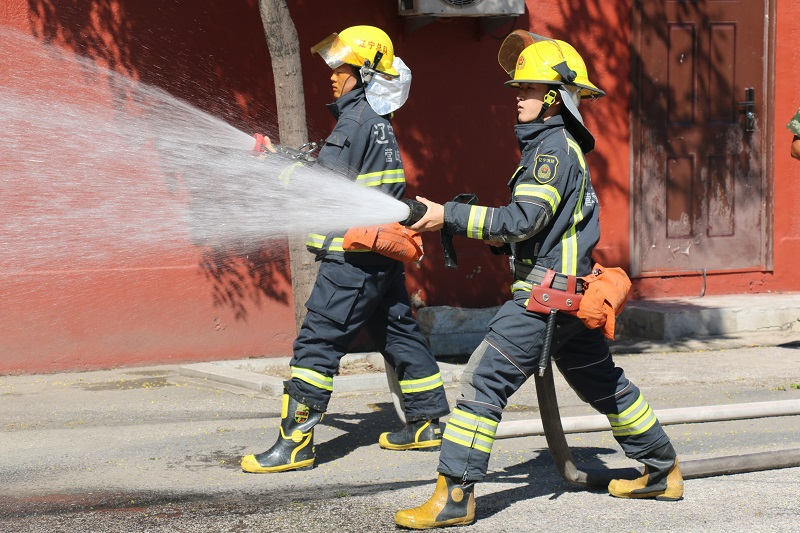 职工们参观了警营文化,消防人员演示讲解了各种灭火器材装备及使用方法,进行了六米拉梯与挂钩梯及消防车实际出水演练。在消防人员的指导下,职工们进行了消防器材及消防车灭火演练。